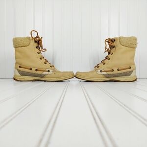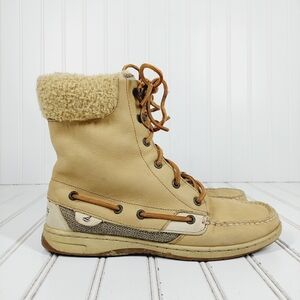 Sperry Top-sider Tall Women Tan Leather Fur Non-Marking Lace Up Ankle Boots B373