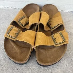 Tan and brown Birkenstock Arizona sandals Brand new corduroy material. MenSize:10 #Birkenstock #Arizona #sandals #shoes #outside