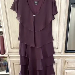 SLNY dress sz 10 eggplant purple euc tiered