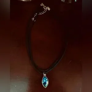 New- adjustable black double leather choker necklace with blue gem. Never been worn. In excellent condition. Comes in a sheer drawstring jewelry bag.
