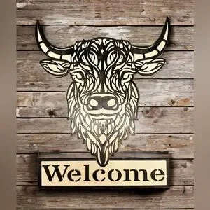 Keywords: Highland Cow, door sign, welcome sign, wooden sign, farmhouse decor, rustic decor, country decor, Scottish decor, wall art
