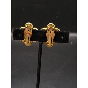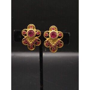Vintage Pink Rhinestone Gold tone Clip on earrings