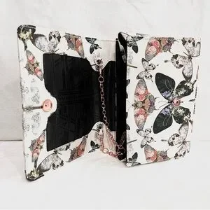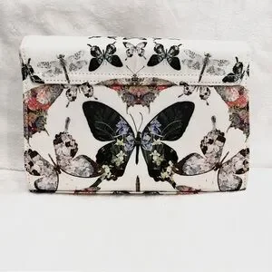 Brand new no tags. Designed in 2017. A gorgeous placed print featuring flowered butterflies and moths covers a neat flap clutch that's a pretty piece to choose for everything from afternoon teas to evenings out on the town.