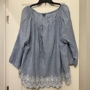 NYDJ blue denim-line long sleeve top