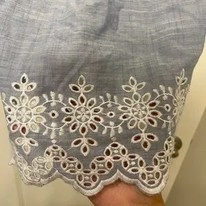 This long sleeve top has white flower design on the bottom of the top.