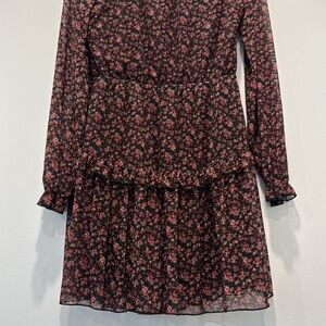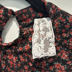 Sadie and Sage mini black dress w/red rose print and ruffles size M gently worn