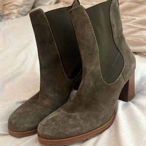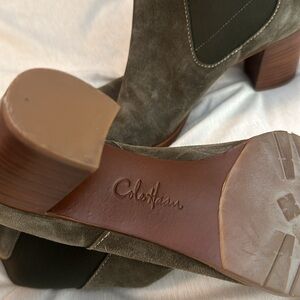 Cole Haan Chelsea Boots, Sz 9.5B, Green Suede Stacked Heel Ankle, NWOB
