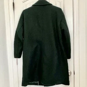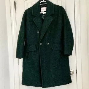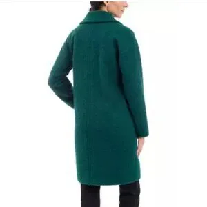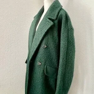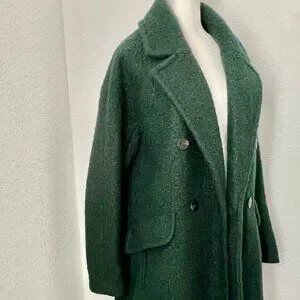 This stunning BCBGeneration peacoat in emerald green is a must-have for any fashion-forward woman's wardrobe. Featuring a classic fit with a mid-length coat and long sleeves, this coat is perfect for fall and/or winter. The boucle fabric gives it a unique and soft texture and a comfortable fit. The coat has a double-breasted button closure with four buttons, providing a stylish and elegant look. It also includes several features such as a collared neckline, satin lined interior, and pockets for storage. The coat is perfect for any occasion, whether it's for travel, party, cocktail, casual, formal, workwear, or business. It is a size 1XL and is dry clean only.