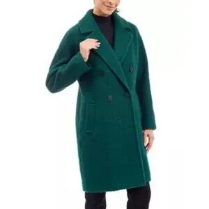 BCBGeneration Women's Double Breasted 4-Button Boucle Peacoat in Emerald Size 1x