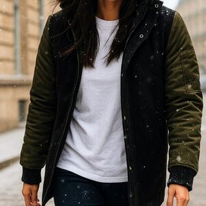 Superdry women’s wool coat in great condition, gently used. Keep warm and stay on trend this season with this wool coat featuring a single layer zip and snaps for fastening and two external zip pockets on the front. Khaki sleeves material are waterproof. This coat is finished off with high quality zipper feature.