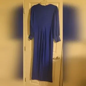 Lady's royal blue wide leg jumpsuit. 30 inches inseam 56 inches from center neckline to bottom. Lantern sleeves. Pleated center. Zip up back. BRAND NEW!!!