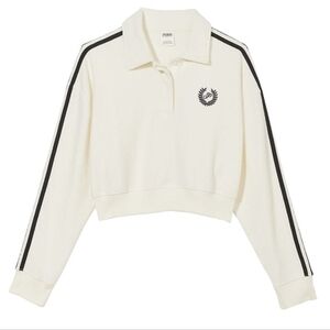 Victoria's Secret PINK Cream Reverse Fleece Cropped Sweatshirt NWT SZ XL