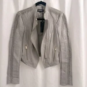 Lamarque Azra leather updated moto jacket sz S Ash Grey