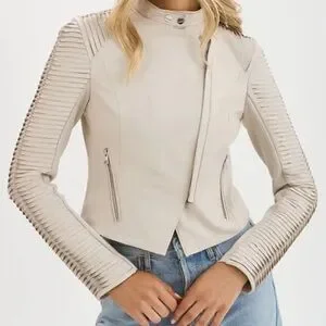 Lamarque Azra Leather Jacket sz Small-textured sleeves, high neckline, and flawless fit. Update to the classic moto jacket