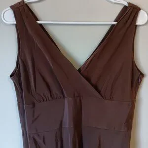 ❄️ J Crew 100% Silk Party Cocktail Dress Size 8 Brown Sleeveless V Neck Side Zip