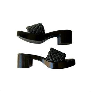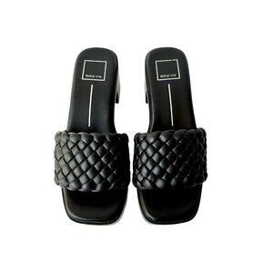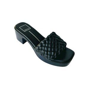 Dolce Vita Black Stella Goldy Quilted Textured Woven Upper Design Square Open Toe Silhouette Cushioned Insole Leather Slide Heeled Platform Sandals Slip-on Shoes Size 8 - Excellent condition.