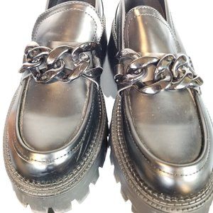 Steve Madden Lug Sole Platform oxford heels loafers with chain size 10