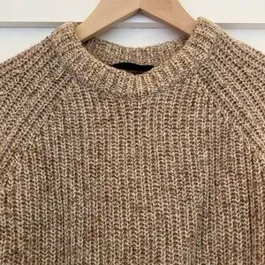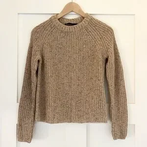 Jenni Kayne Recycled Cashmere Fisherman Sweater Marled Camel Size XS