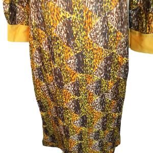 Vintage 1960s Mayfair Yellow Brown Orange Abstract Print Long Sleeve Maxi Dress