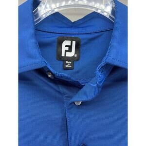 Foot Joy men's golf shirt. In the color blue. Tagged size XL. This men's Foot Joy shirt features a micro stripe pattern, short sleeves, soft light weight fabric, and a relaxed fit. In good preowned condition with minimal signs of wear. Hit the links in style and comfort with this striped foot joy FJ polo!