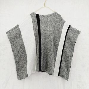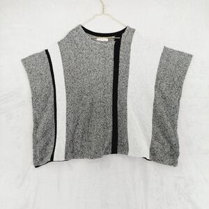 LOFT Ann Taylor Gray White Short Sleeve Poncho Casual Sweaters P3889