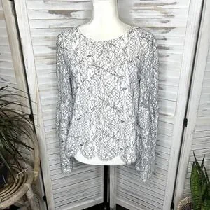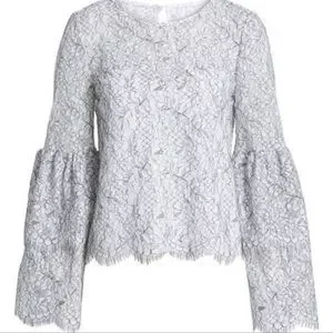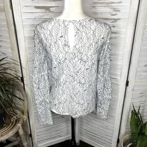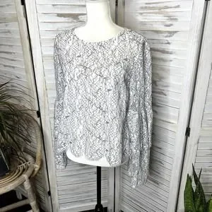Cupcakes & CASHMERE Women's M Basewood Lace Bell Sleeve Blouse Top Black White