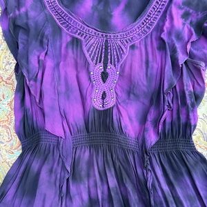 Live and Let Live Purple Tie Dye Peplum Blouse with Embroidery, size XL