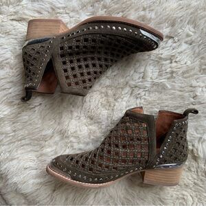 Jeffrey Campbell Tagalong Stud Western Cut Out Ankle Bootie Olive Green Size 6