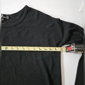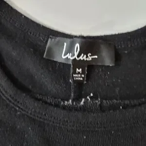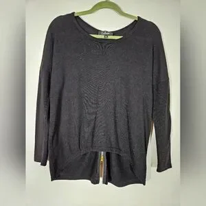 Lulus women's size M " zip to my lou" black, crewneck, hi low hem, long sleeve, knit sweater top with back goldtone zipper detail. front has curved hem. pre-owned in very good condition.