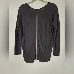 Lulus sz M Black zip to my lou hi low back goldtone zip sweater top