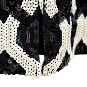 Stunning dress with black and white sequins, back zipper, fully lined and a back slit (not cut ) This dress is perfect for any dressy occasion, wedding, cocktail party or resort wear. Made with exceptional quality.