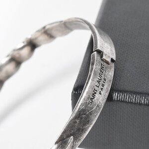 Saint Laurent Paris Silver Bracelet Twisted Design Minimalist Bangle Clasp
