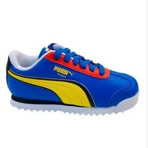 Toddler PUMA Roma sneaker. Size: 8C Condition: used, good (plenty of life still in them) Colors: blue, yellow, red