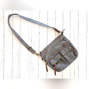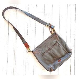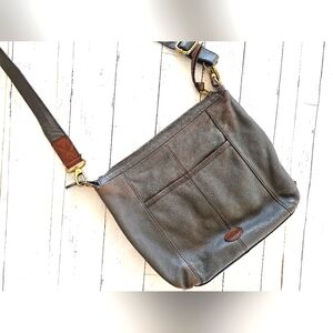 Fossil Morgan Large Crossbody Purse Gray Taupe Leather Bag w/ Storage Pockets