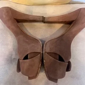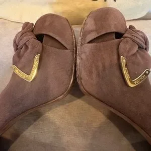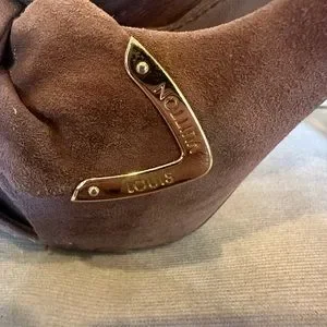 Louis Vuitton heels in a pinkish/taupe/ neutral color suede.