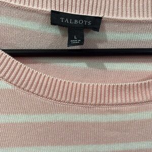Near perfect condition, super cute Talbots peach and white striped with cute butterfly, print, long sleeve cotton blend sweater
