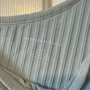 Hashtags: #AmericanEagle #AE #OneShoulder #CropTop #SizeL #LightBlue #LikeNew #NeverWorn #SmokeFree #FastShipping