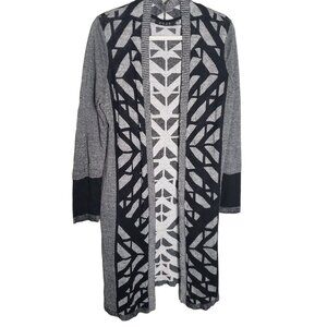 ZOZO woman Size L Long Cardigan Linen Viscose blend Geometric print Open Front Duster Excellent condition