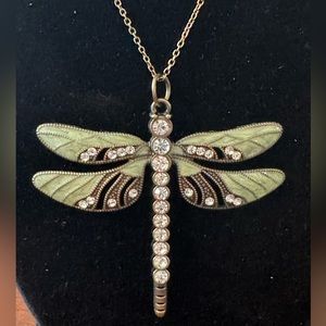 Enamel Dragonfly Pendant accented wings, and a rhinestone-crusted body, with an antique finish necklace