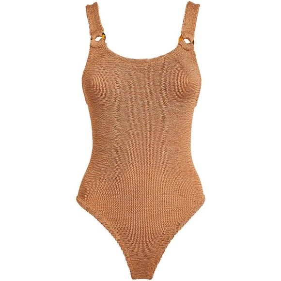 NEW Hunza G Metallic Cocoa Domino One Piece Swimsuit Brown Tan Swimwear Crinkle