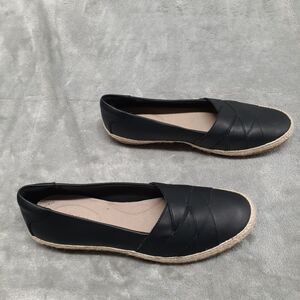Step into ultimate comfort with these Clarks Danelly Shine slip-on flats. Crafted from premium quality black leather, these shoes feature an almond toe shape and a solid pattern. The slip-on closure allows for easy wear, making them perfect for busy days or nights out. These shoes are part of the Ultimates character family and come in a size 10 for women. The fabric lining and insole provide added comfort, while the leather upper material ensures durability. Whether you're running errands or dressing up for an occasion, these Clarks flats are the perfect addition to your shoe collection.