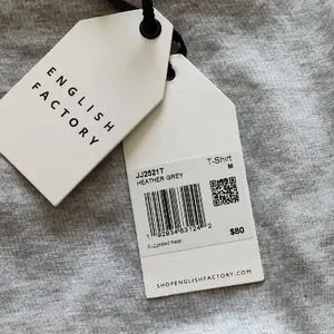 English Factory from Anthropology light gray t-shirt features a relaxed, boxy fit with cap sleeves and a classic crew neck style. Made for a comfortable and casual look .Size M new with tags.