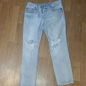 Levi's 501 Button Fly Light Wash Distressed Jeans Sz 14/32