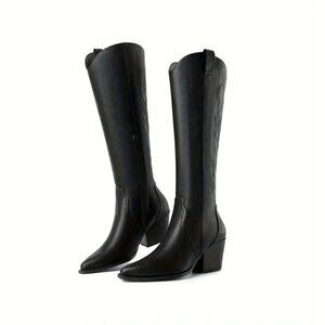 Beautiful!!! Embroidered Knee-High Cowboy Boots Western Cowgirl Boots for Womens Mid Calf Chunky Heel Pull on Stitching Zipper Pointed Toe Mid Low Heel Boots