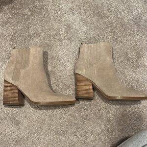 worn once, have some slight marks in the suede (shown) otherwise great condition