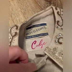 Vintage 1940’s 50s rhinestone beads linen dress pleats buttons Medium M 28”w VLV