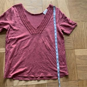 Lovely tee from Sezane in a dusty rose/pink hue. 100% linen. Good condition, I'd say a medium amount of wash wear to the fabric, otherwise in sound shape!