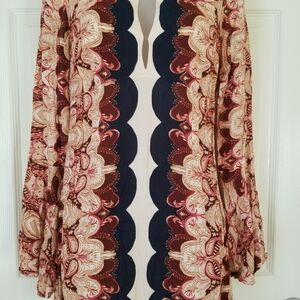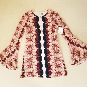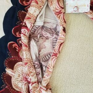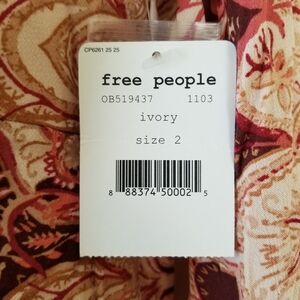 New with tags. Gorgeous top from Free People. Women's size XS. Raised waistline, flare cuff, concealed zipper in the side seam. Floral print.