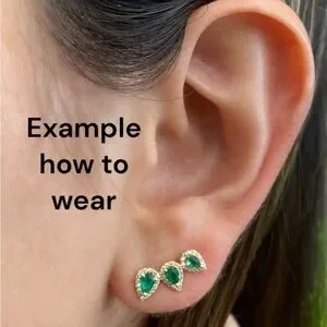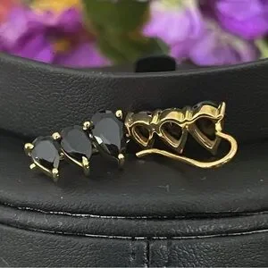 These natural Black Onyx stone earrings are set in yellow gold over brass and climb up the ear. New and unworn.