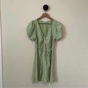 Madewell V-Neck Mini Dress 6 – Green Seedling Tie Back Button Front